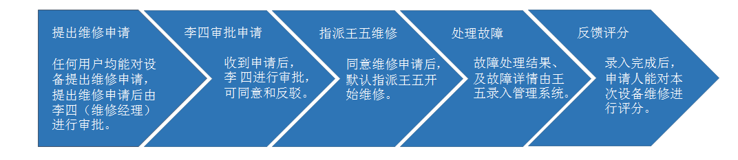 設(shè)備維修管理根據(jù)企業(yè)業(yè)務流程,設(shè)置設(shè)備維修審批、處理、反饋的全流程。