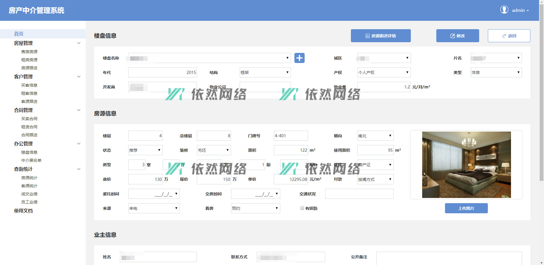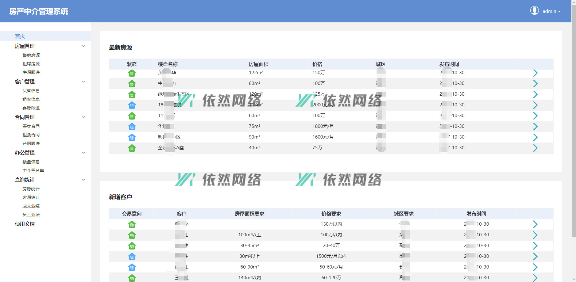此系統(tǒng)用于房屋中介管理。分為房屋管理、客戶管理、合同管理、辦公管理以及查詢統(tǒng)計(jì)五個(gè)模塊。用戶可以使用此系統(tǒng)科學(xué)有效的管理房源以及客源,在填表時(shí)快速自動(dòng)填充相關(guān)字段,告別繁雜重復(fù)的填寫工作。