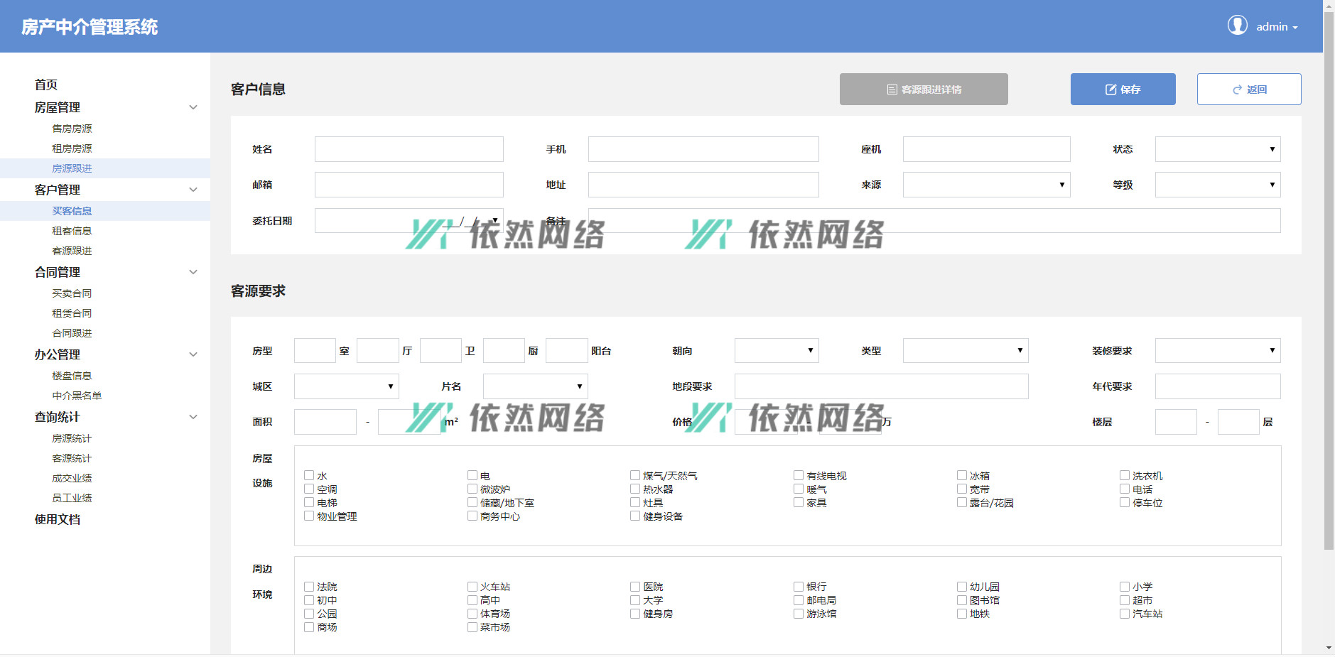 單擊「錄入客源」按鈕,在客源信息頁(yè)面,輸入客戶信息、房源要求后,單擊「保存」按鈕即可。