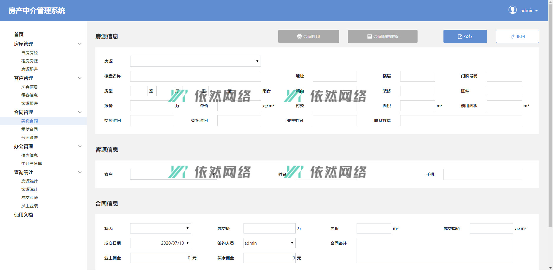 單擊「新增合同」按鈕,在合同信息頁(yè)面,輸入房源信息、客源信息、合同信息后,單擊「保存」按鈕即可。
