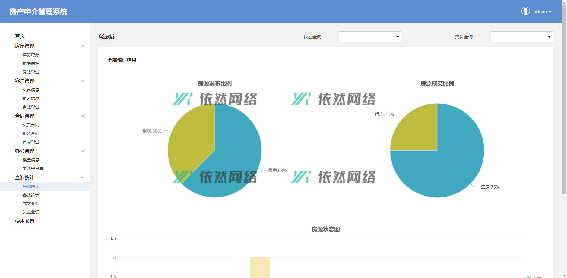 在此模塊下,您可以查看房源統(tǒng)計(jì)、客源統(tǒng)計(jì)、成交業(yè)績(jī)和員工業(yè)績(jī),并可以查詢過濾。