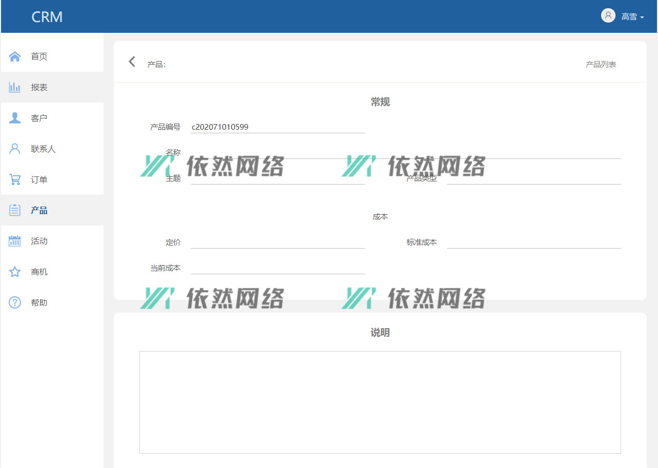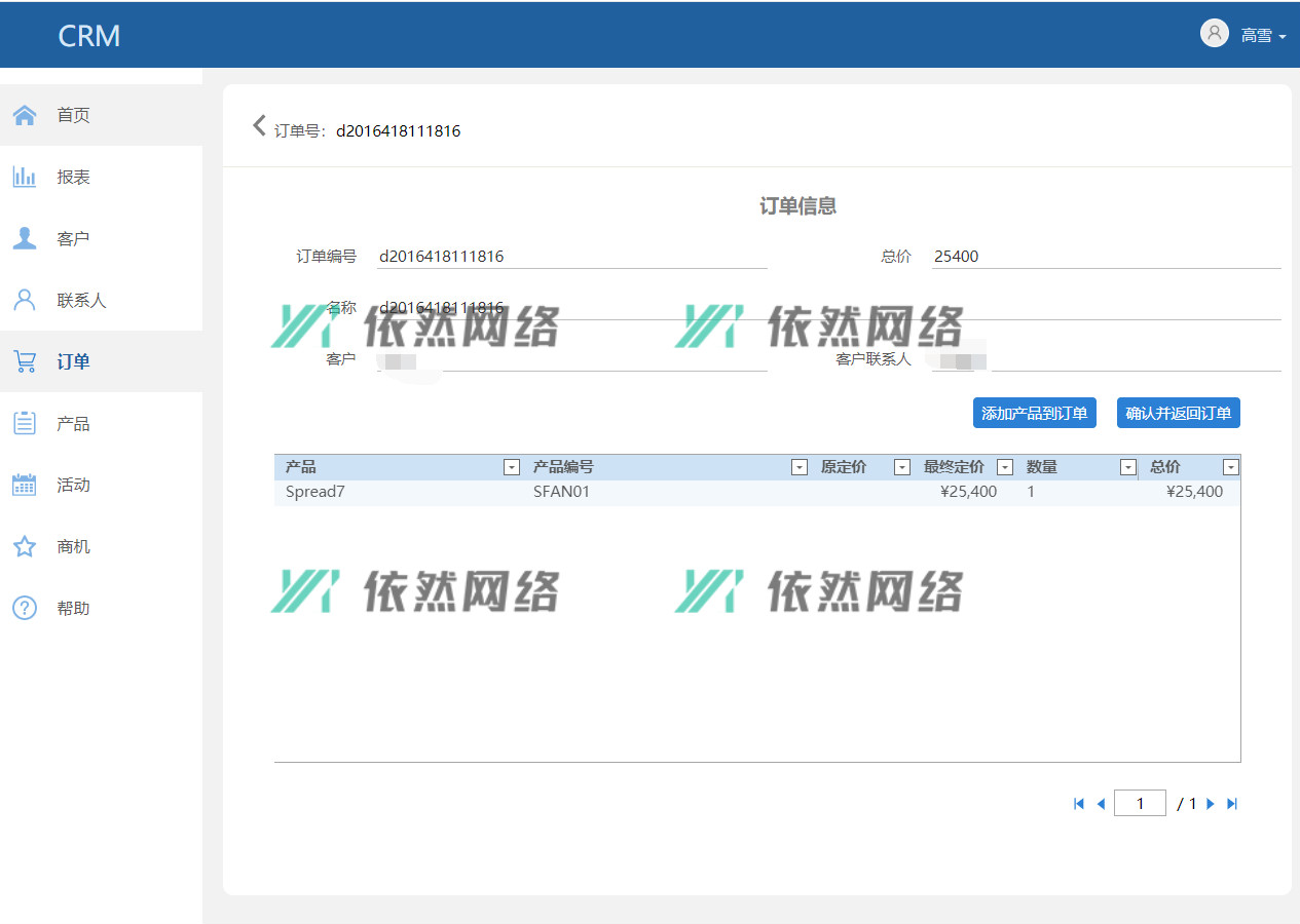 本系統(tǒng)包括報(bào)表、客戶、聯(lián)系人、訂單、產(chǎn)品、活動(dòng)和商機(jī)七個(gè)模塊。
