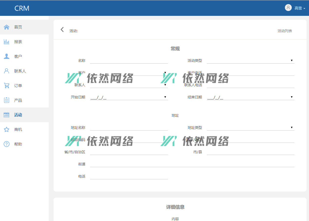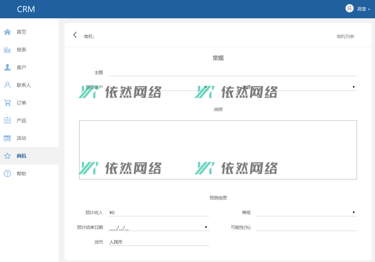 本系統(tǒng)實(shí)現(xiàn)了CRM的一些基本功能,提供了客戶、聯(lián)系人、訂單、產(chǎn)品、活動(dòng)及商機(jī)的管理功能。您可以通過本系統(tǒng)管理客戶、聯(lián)系人,訂單及產(chǎn)品,也可以通過活動(dòng)或者商機(jī)功能來追蹤銷售情況。