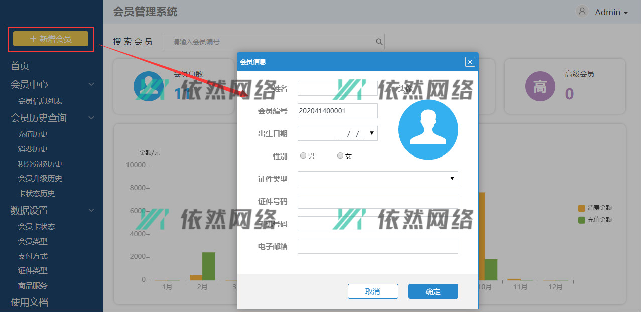 單擊左側菜單中的「新增會員」,在彈出的頁面中可以編輯會員的信息。