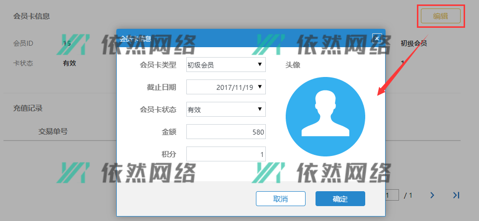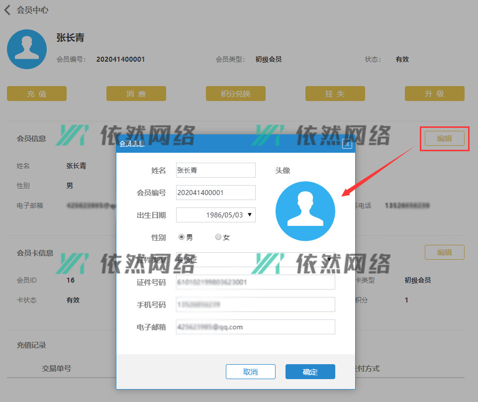 單擊會員信息后的「編輯」,在彈出的頁面中可以編輯會員的信息。